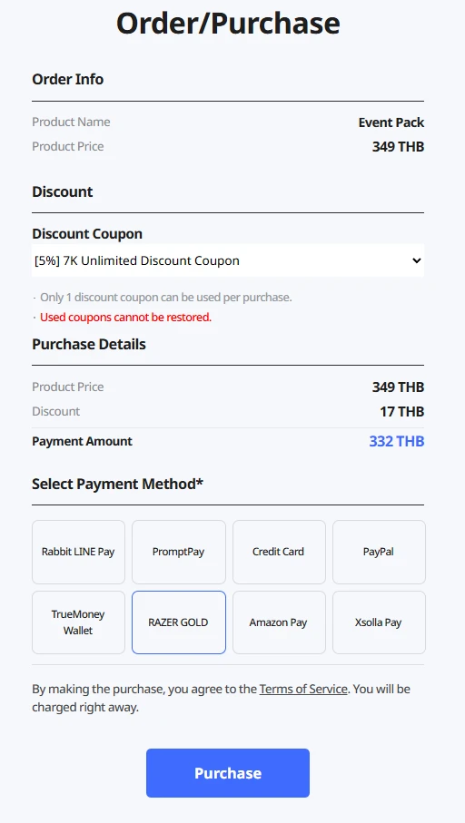 2 เลือกชำระรูปแบบ Razergold
